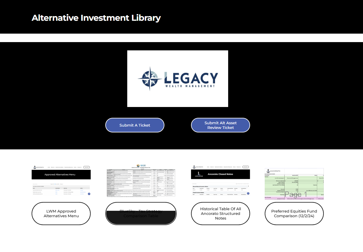 Welcome to the Legacy Advisor Portal Lighthouse Managed Strategies Alternative Investment Due Diligence